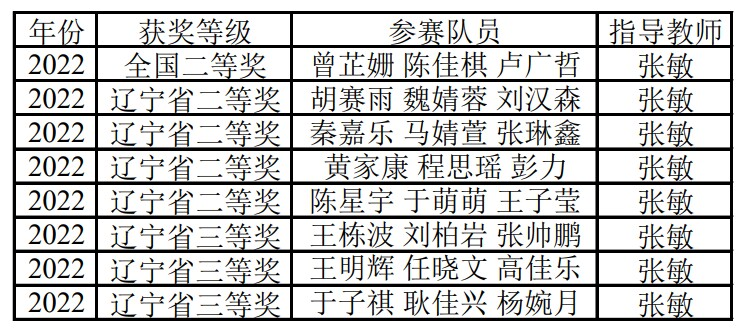 选派的参赛队共获得全国二等奖1项,辽宁省二等奖4项、辽宁省三等奖3项。具体获奖人员名单见下表。