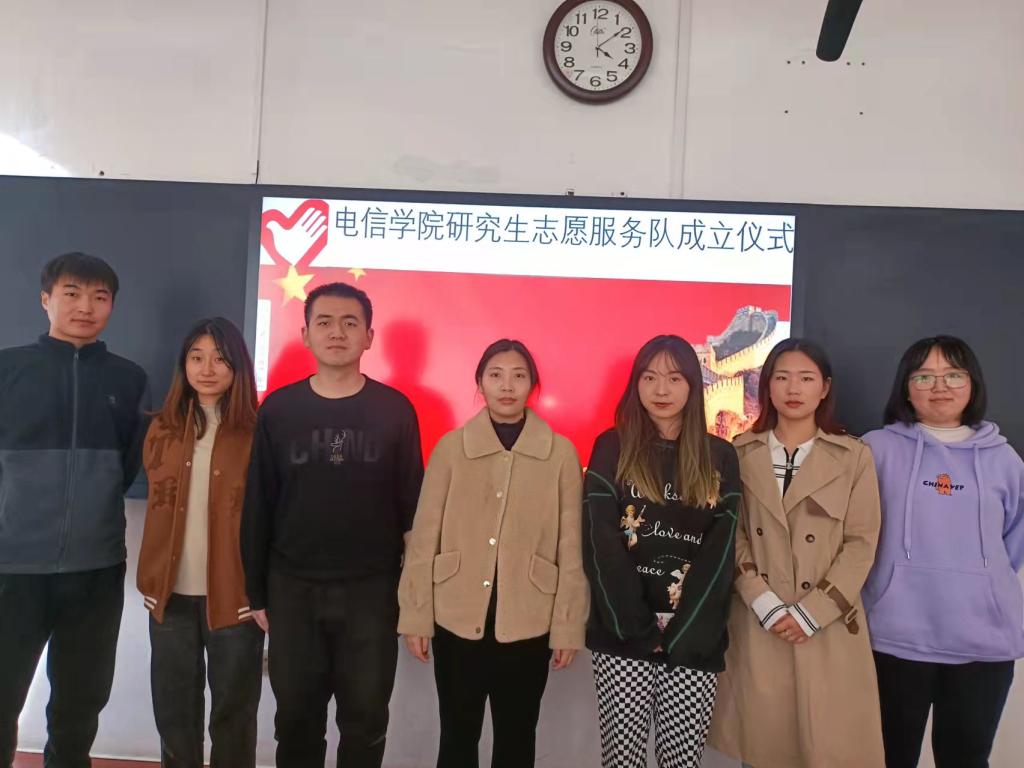 各类活动,积极发扬志愿服务精神。电信研究生志愿服务队成员将会以奋发向上的积极态度、锲而不舍的精神,积极投身于志愿服务活动中,努力践行志愿精神,为校园建设贡献青春和力量。