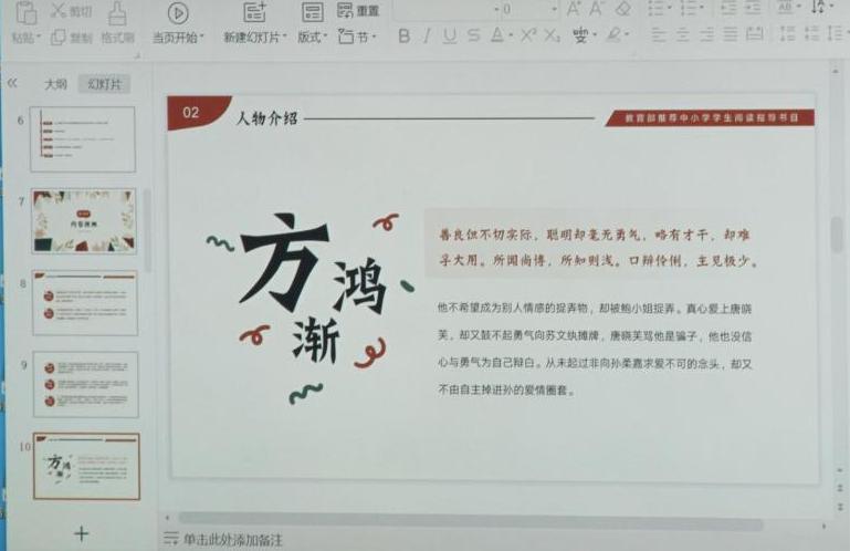 每一位选手精心制作展示PPT,向大家分享了自己喜爱的书籍,简要介绍了书籍的作者,写作的背景、初衷,概述了书籍的内容,阐释自己对所分享书籍的认识,并将自己感受颇深的好字、好句、好段与参会人员共同阅读。
