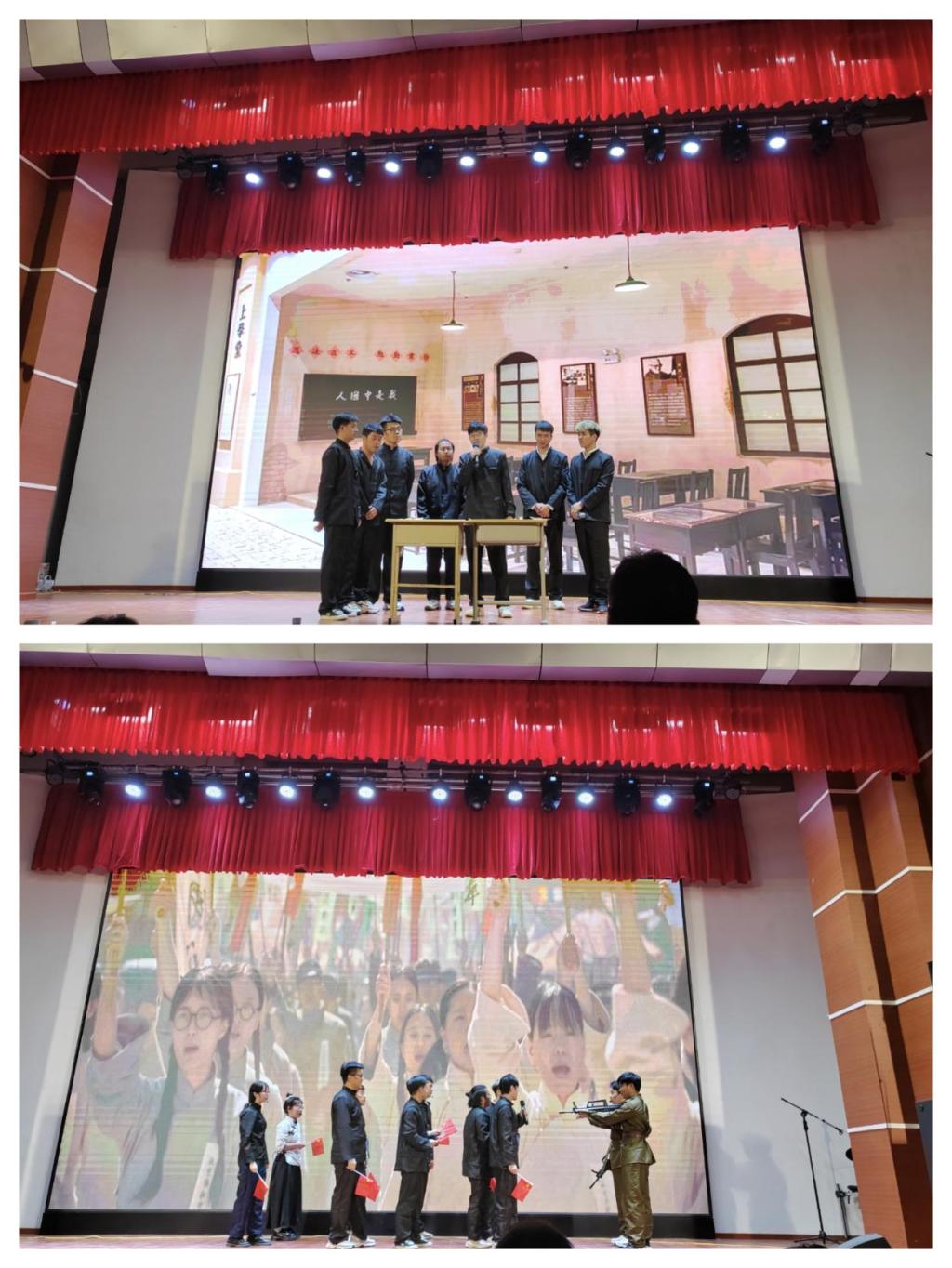践行二十大,讲述新面貌。“《五四风雷》”话剧表演,仿佛把同学们带回那个硝烟的年代,这是一次彻底地不妥协地反帝反封建的爱国民主运动,也是一次伟大的思想解放运动,如今,我们仍然铭记并传承着先辈的爱国主义精神。电信青年昂首挺胸,用最平凡的语言、最响亮的声音、最朴实的情感抒发了对党和祖国的热爱与忠诚,带领同学们回顾了党的光辉历程、讴歌了党的丰功伟绩,表达了青春献礼二十大,逐梦新征程的信心。是新一代莘莘学子发自心底的庄严承诺,表演现场,学子们发自内心的深情演绎,引起了全场观众的强烈共鸣,也深深地感染着同学们,激励着同学们在新征程上担当新使命、不负青春,以实际行动践行党的二十大精神!