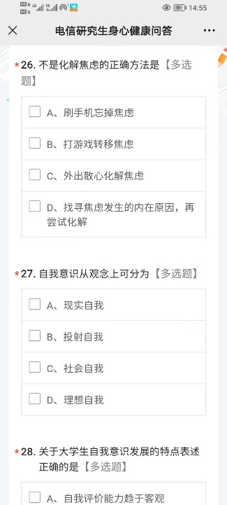 研究生工作部通过问卷星平台设计一系列心理健康知识问答活动,设计了一系列心理健康知识问答活动,通过互动形式普及心理健康知识,增强同学们的学习兴趣和参与度,提高对心理健康问题的识别和解决能力。