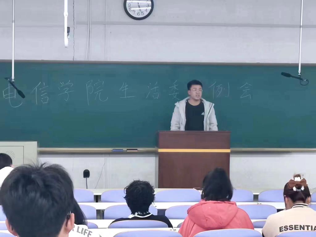 于3月8日下午在尔雅楼101召开了全体生活委员和寝室长工作会议,大学生自委会指导教师王兆全参加了会议。