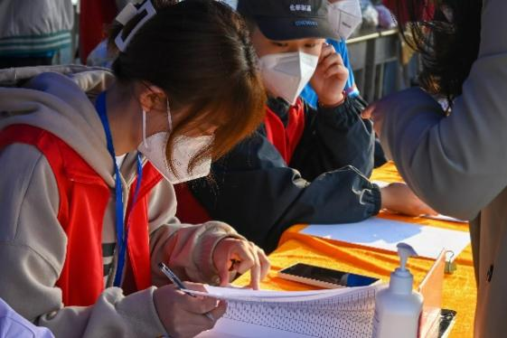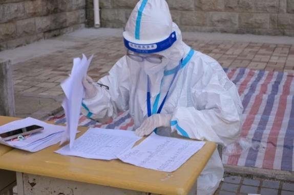 志愿者在核酸检测后认真核对数据