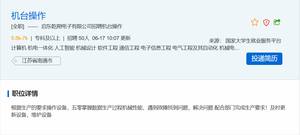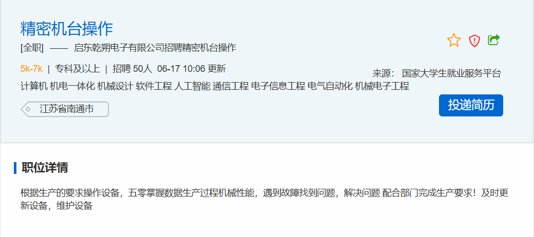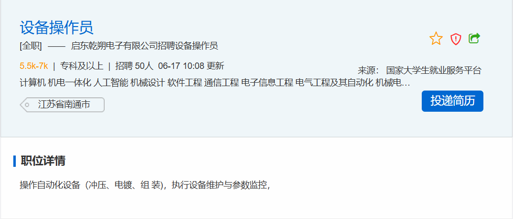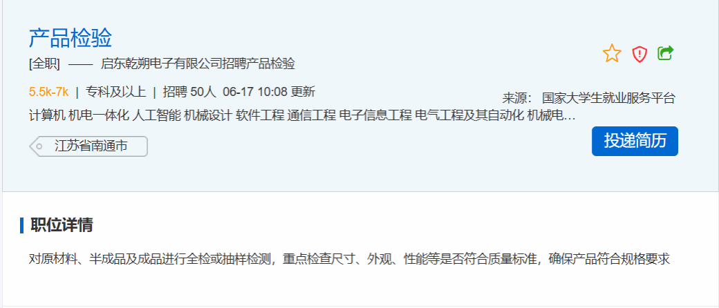 启东乾朔电子有限公司线上招聘 | 专科以上