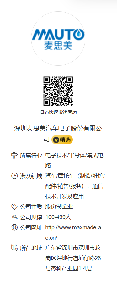 深圳麦思美汽车电子股份有限公司线上招聘 | 本科及以上学历