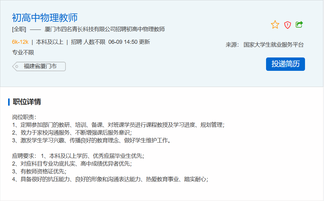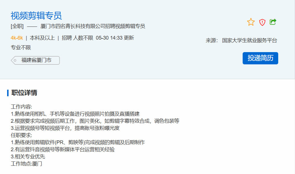 [来源]:国家大学生就业服务平台