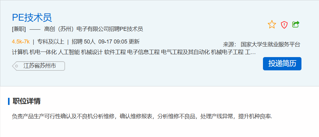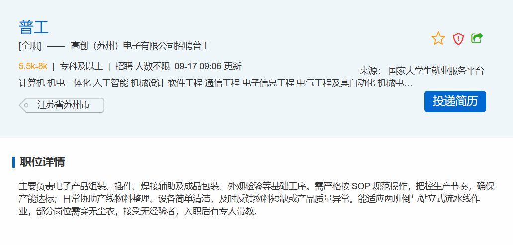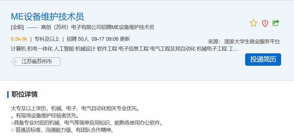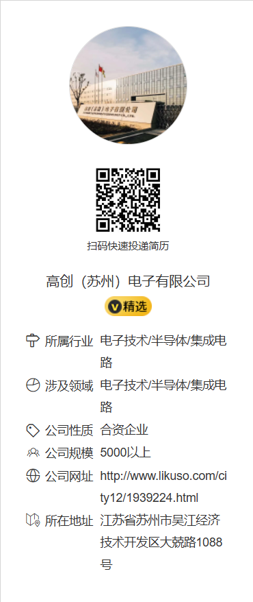 高创(苏州)电子有限公司线上招聘 | 专科及以上学历