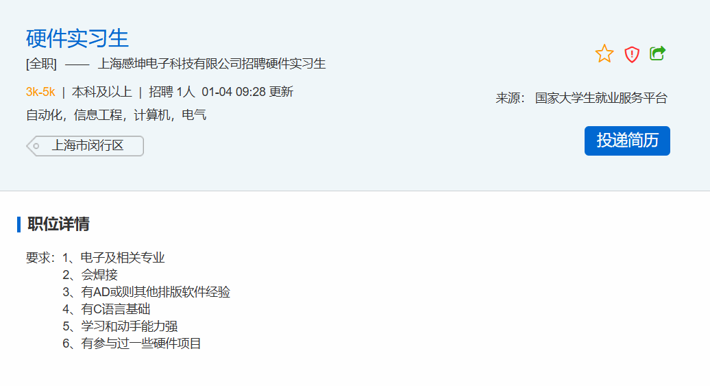 上海感坤电子科技有限公司招硬件工程师 | 本科及以上学历